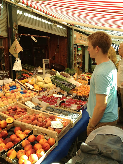 We ventured there via U-Bahn last Saturday, and it definitely lived up to my expectations and then some! There were tons of restaurants, fresh produce, meats, seafood, cheeses, and handmade goods. Since it was Saturday, there was also a flea market going on as well...which was Justin's favorite ;).
